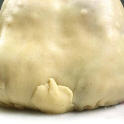 - Add a semi circular section of thinly rolled marzipan for the neck-flap and pinch it to make it look irregular.